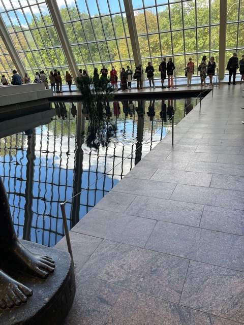 Lines extend all around the Temple of Dendur, people wanting to get into the costume exhibit that just opened and was celebrated by the Gala and its plant-based cuisine. Let them eat plant-based cake!