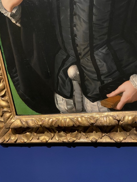 I’ve seen this arrogant young man before, Ludovico Capponi, in the Frick Collection, adorned in a black taffeta jerkin, painted by Bronzino in 1550. He was supposedly quite the ladies man.