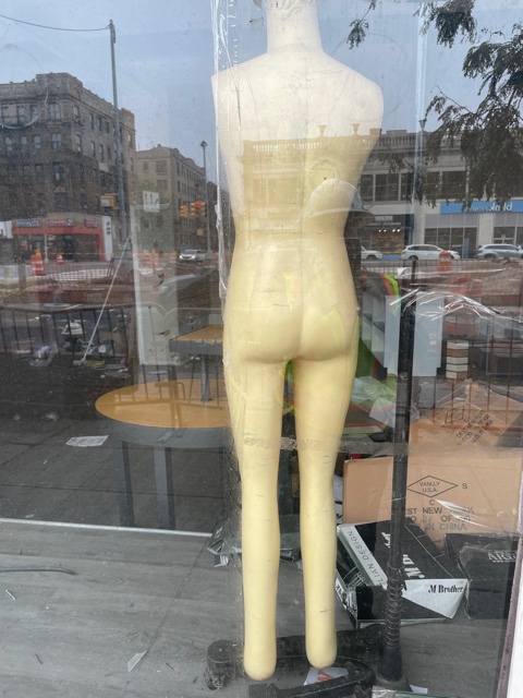 Then there is the epitome of fabulousness as well as success, the furniture store that is jammed with merchandise inside and out, where you can get yourself a new black lacquer dresser for $200. Lights glitter, mirrors decorate every surface. Most of all, catching the eyes of neighborhood walkers, is the bedroom set that I myself might fancy, if I didn’t sleep in a Murphy bed.