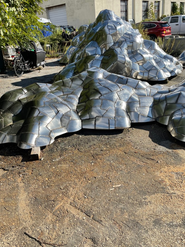 Prospect Park wanted to buy one of them but they were afraid kids would use them to play on and there might be some kind of injury. It would be a cool place to climb. That fell through. He welds a lot of smaller pieces, too.