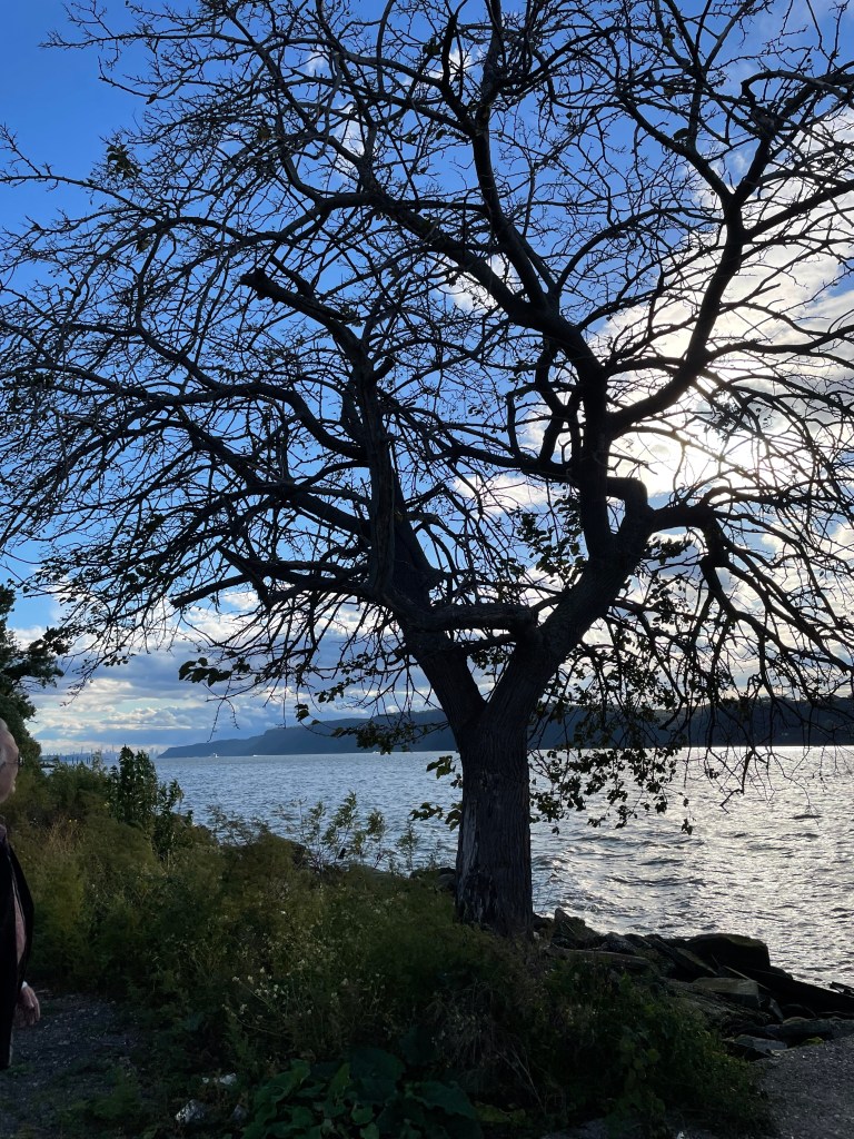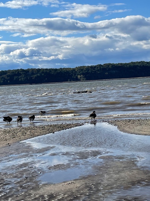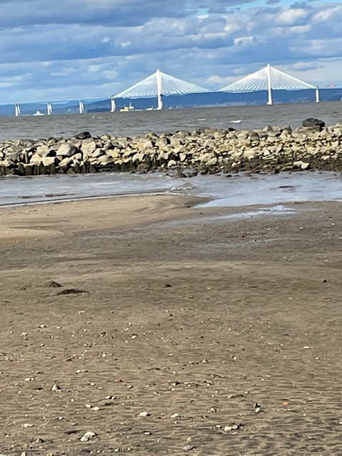 We used to take the dogs here to swim. A tributary debouches into the Hudson and it’s said a Lenape midden can be found a little ways up the stream. Ancient oyster midden, spanking new Tappan Zee Bridge — or Mario Cuomo bridge, or just the Tap, to old timers.