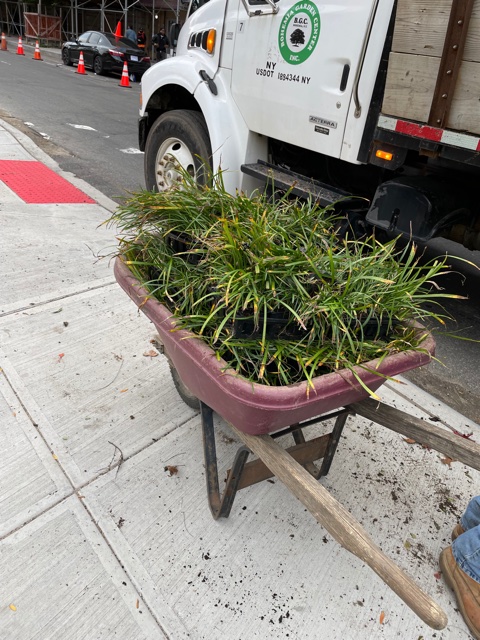 Or the flock of seagulls that descended where we were planting, much like the many we saw in the wild at Jones Beach summer. One took a bite out of some thing lying in the middle of Grand Concourse and flew off vigorously. Proudly.
