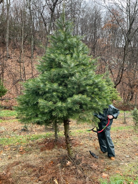 But we go for the concolor fir, just because we’ve done that before. That’s sentimentality. There’s a guy who concurs, “It’s nice and soft and smells good.”