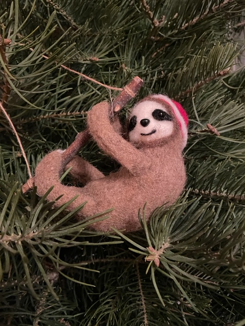 That one has my name on it. The lemur. Of course. There is a myth that the ornament you like was made for you, or the tree you choose is perfect for you, almost that it was grown all those years with you in mind. Our choice has been pruned back for so many years it’s ridiculous.