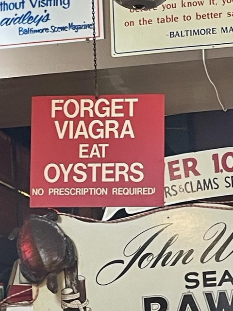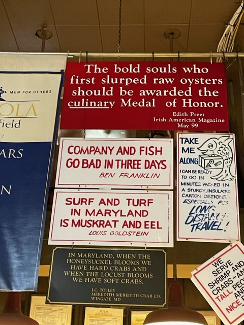 At Faidley’s the crab cakes include mustard and crumbled saltines. (You can easily get the recipe on food.com but of course that’s not the same as going there.) Hence the wall of crackers. We might have supply chain shortages, but they’l never run out.