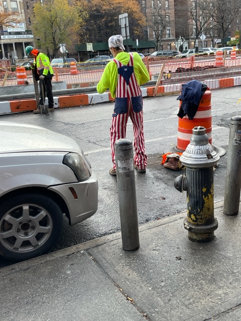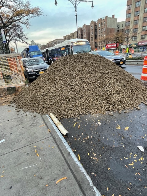 The best known type, developed at Cornell University, consists of crushed stone blended with hydrogel and moist loam; its magic lies in the fact that street trees’ roots are free to roam in the un-compacted material. Which is what trees like and need. You have to blend it like pancake mix before you place it in the tree pit. If you were to look under the sidewalk – now is your chance— you would find that all the best tree pits now feature structural soil.