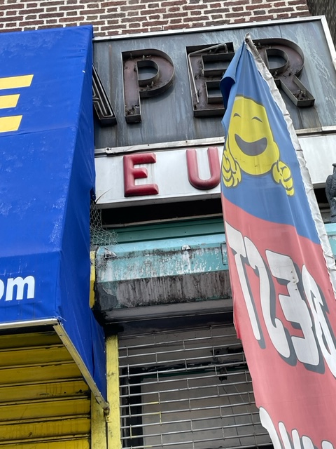 Peering with another arborist up at a street tree at 188 Street to see if it needs pruning, out pops something amazing. A new discovery: a timeline of store signs that had never been removed before the next iteration was hung. I love secret histories.