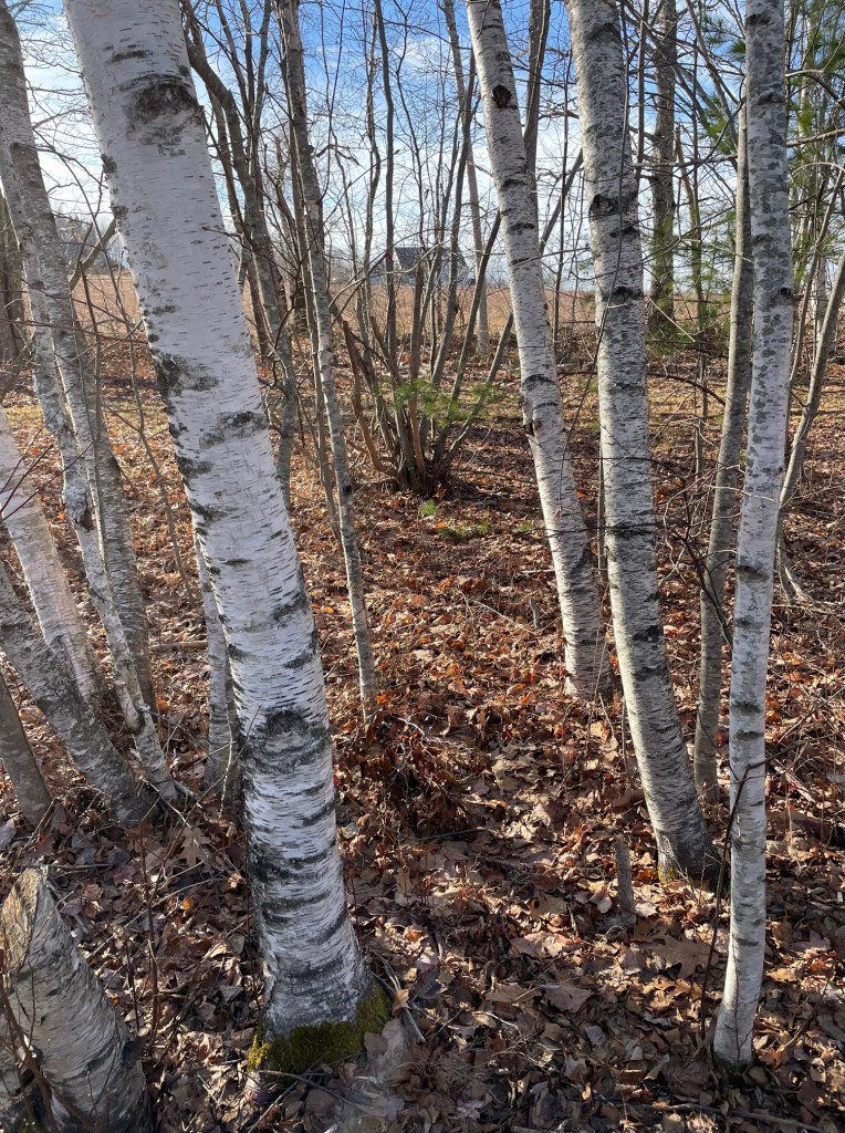 A stand of paper birch, in Maine, with the cold air all around. No lovelier place exists.