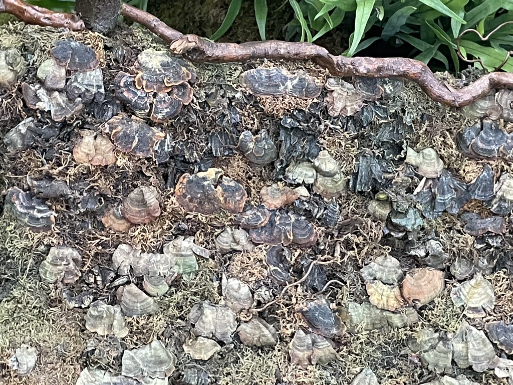 The thing is, every one of the 175 classic NY buildings surrounded by tracks is made of reeds, moss, pine bark, fungus, eucalyptus stems, grapevine tendrils, acorn caps, pistachio shells, cocoa nuts, white pine cones, et cetera. And did I mention twigs? Lots and lots of twigs. I didn’t see any Beautyberry but it probably doesn’t play well with others. The cables of the suspension bridges are made from willow twigs. The spans are supported by hidden wooden beams (and steel cables).Some structures are lit up inside with an inviting glow. There are a lot of different forms of transportation represented: trolleys, passenger and freight trains, steam and diesel engines–just not cars.