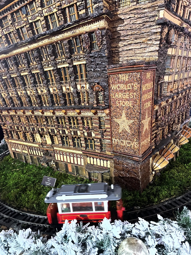 It’s all about New York. What’s not to love. And an interesting conceit, because although tracks once ran all over the place, they most certainly did not run close to these classic buildings. Fantasy. Christmastime. No holds barred.