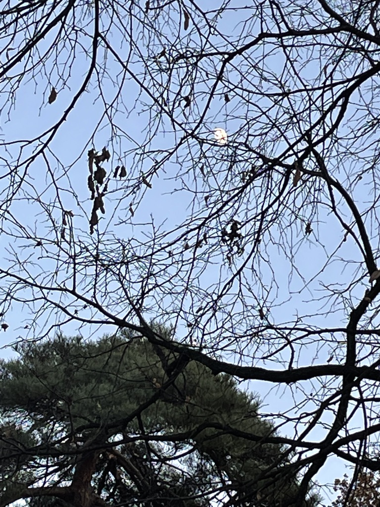 Or a half moon gleaming through the branches of a huge mature tree.
