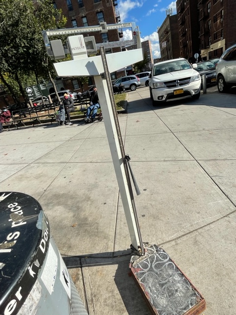 A discarded scale. Someone might have gotten tired of weighing themselves after all those heavy meals at La Estrella Restaurant.