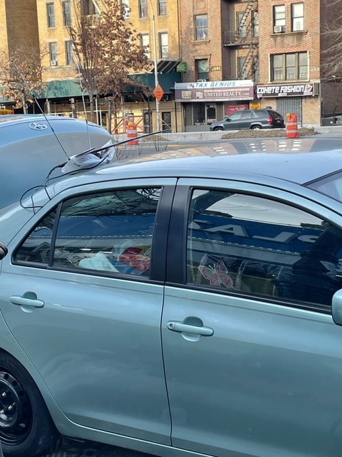 The antenna-powered car. Can’t get a pic of the owner, too skeevy—but he can usually be found trading in his cans at the recycling center.
