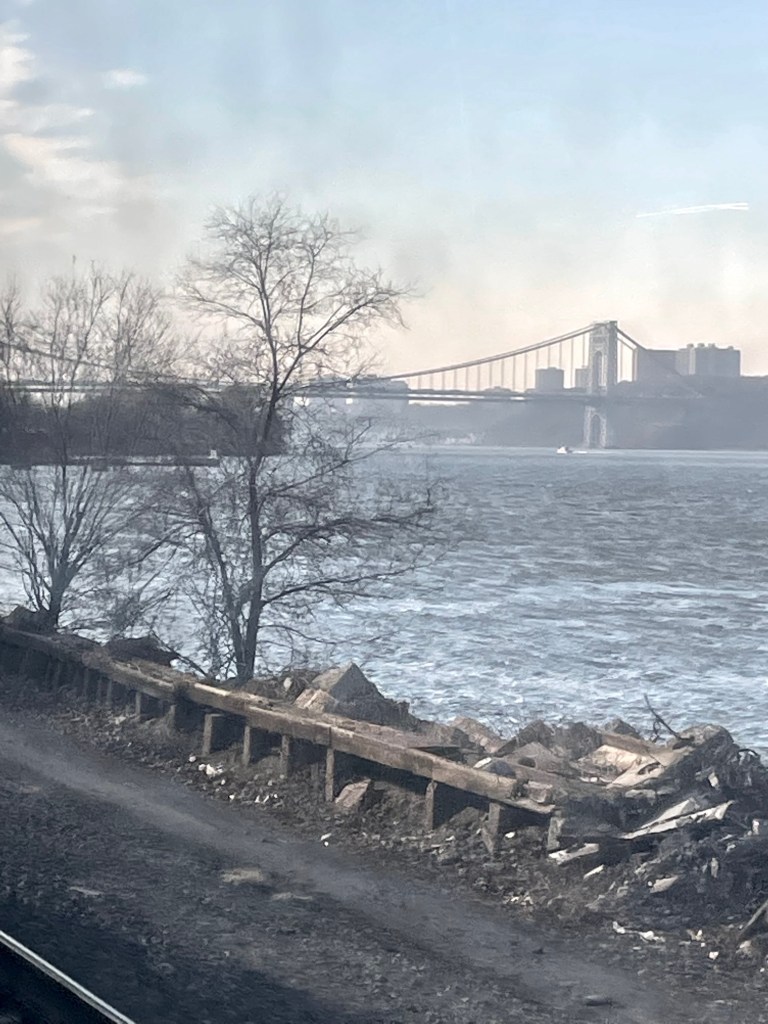 Still there is such jaw-dropping beauty approaching the George Washington Bridge, under a silvery sky.