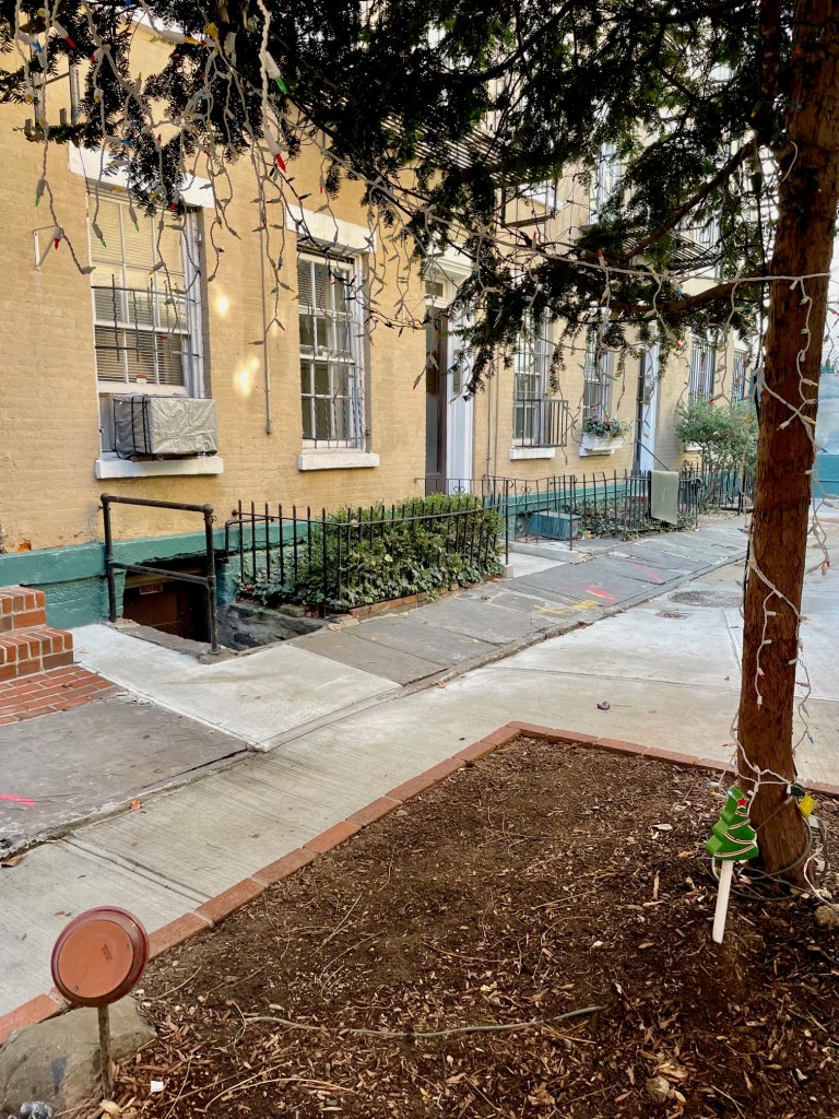 The iron gate at Milligan Place on Sixth Avenue between 10th and 11th Streets is usually locked and you can barely see in. Today by some good fortune it had swung open, revealing the gracious town homes that were originally built in 1852. Patchin Place, a better known neighboring mews, housed literary greats like e.e. cummings and Theodore Dreiser. Milligan Place was built originally to shelter workers for the nearby Brevoort House Hotel but ultimately put a roof over Eugene O’Neill and other lauded types. Sneaking in now is stepping into the past. Sshhhh. If you want to rent the penthouse of one it will set you back 7,000 a month.