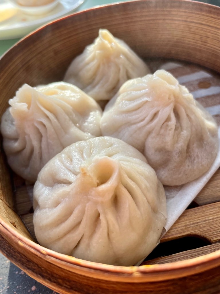 You pick up a steamed, plump dough package with chopsticks, set it on a spoon, bite off the top, slurp the soup and then gulp down the pork meatball inside. Divine. Burnt tongue optional.