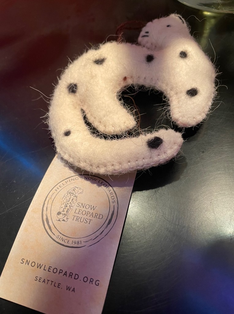 With every purchased ticket comes an ornament, a snow leopard sewn of felt from sheep wool, handmade in Mongolia. A reminder that in this very complex and difficult time it is good to focus on what is beautiful in the moment. Like a frosted donut.