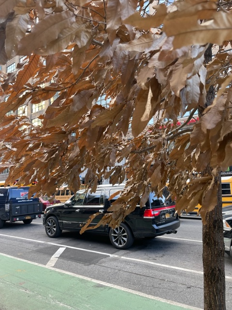The sawtooth oak (Quercus acutissima) just doesn’t get the picture that it’s winter now and time to drop its leaves. No one clued it in. Or maybe it’s just stubborn. I saw an English oak today with a mask embellishing its lowest branches.