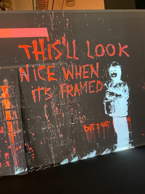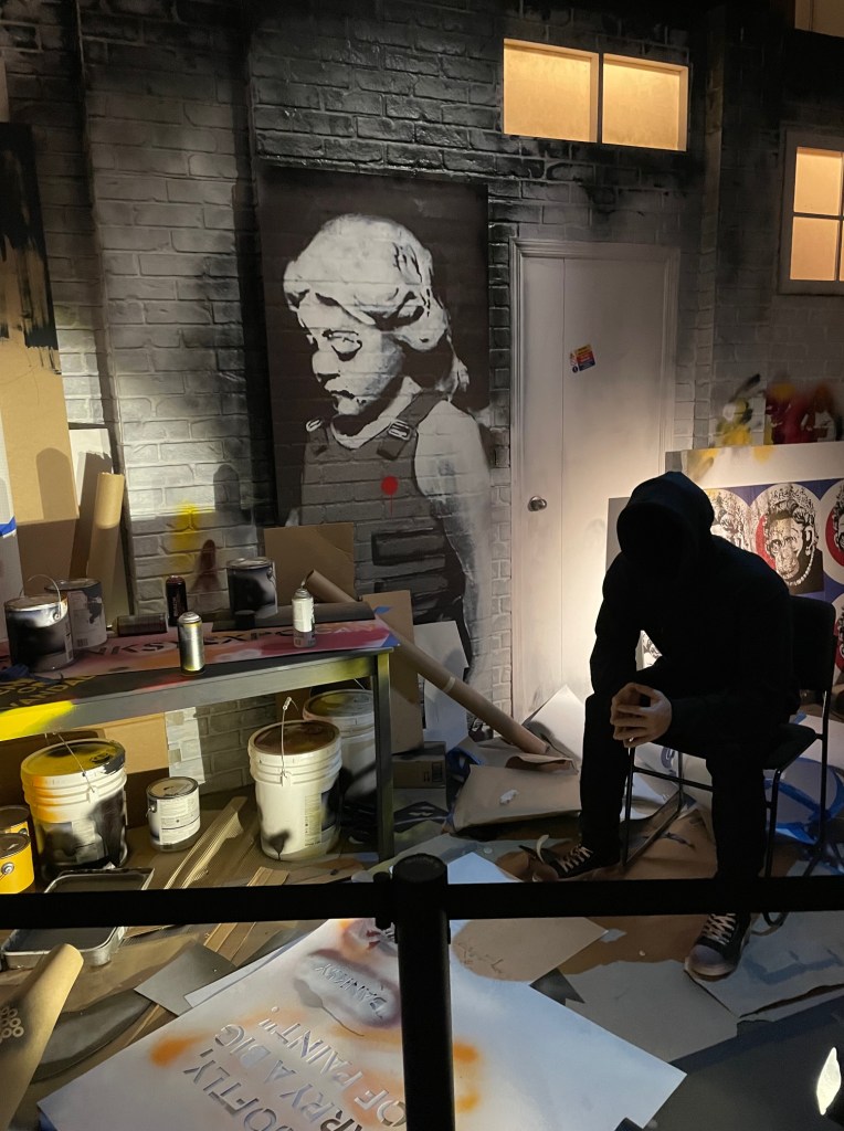 Up Sixth Avenue, satire ruled with the ongoing Banksy exhibit. A lot of people know the enigmatic artist’s probably most famous work, the image of a young girl letting go of a heart-shaped balloon, which was first painted under the stairs at South Bank.