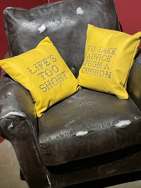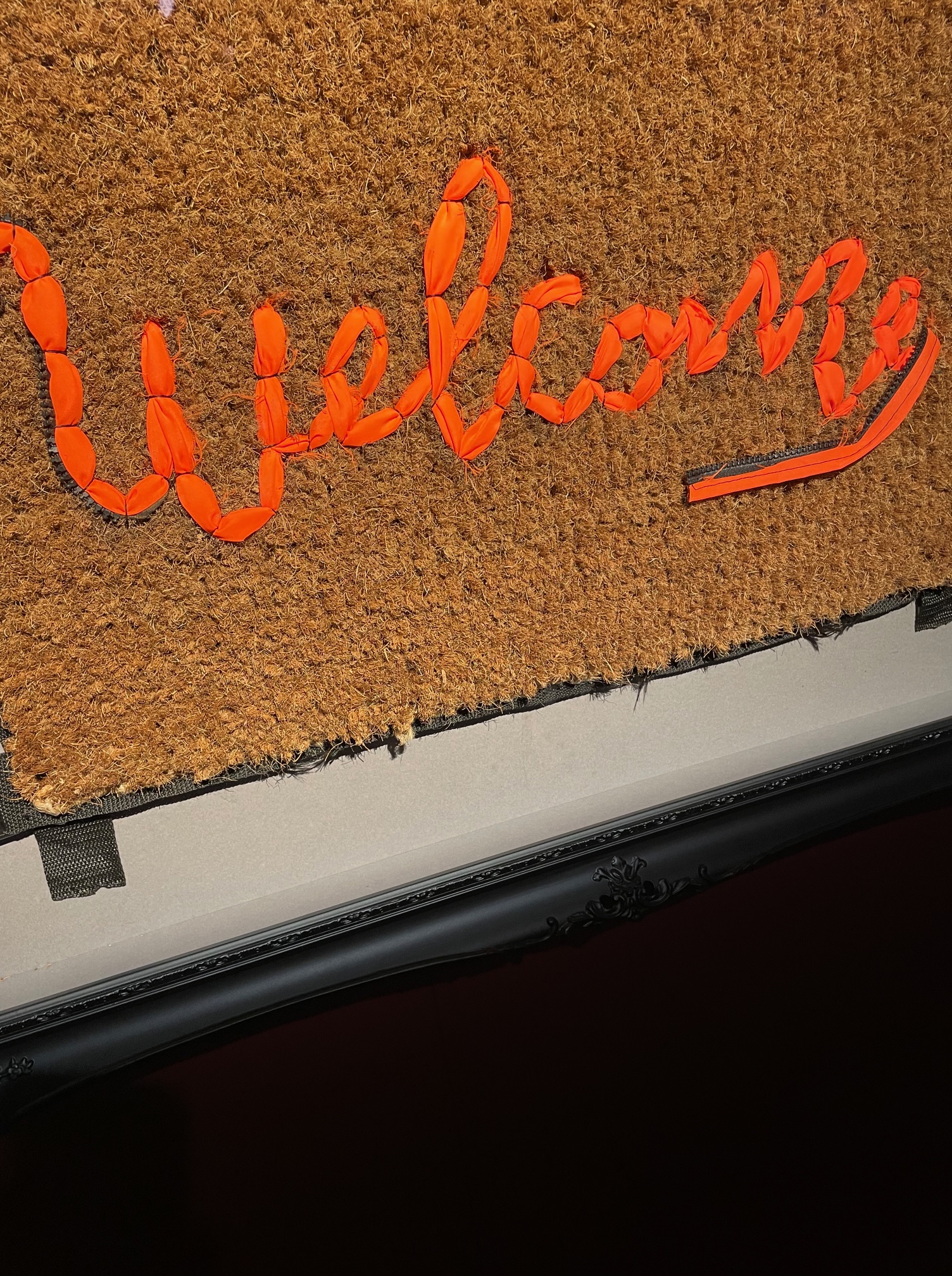 I liked this 2020 doormat with its message made out of refugee life vests.