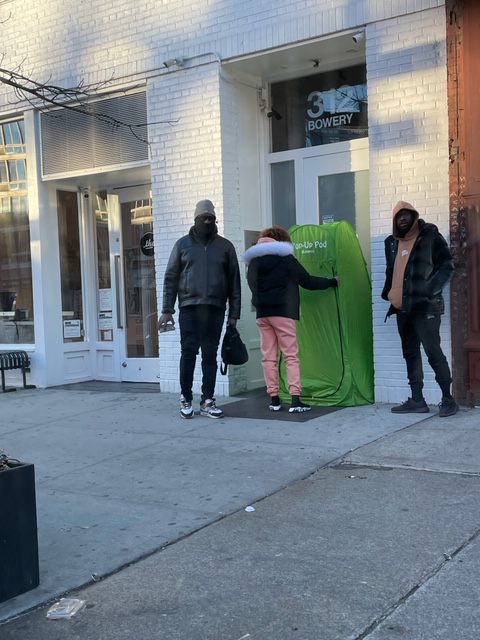 New York City is returning to its pre-Christmas energy. A model changed her clothes on the street in a popup tent.