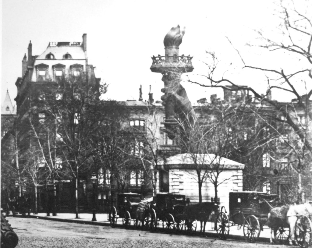 At that time the Statue of Liberty had not yet been fully assembled, and the torch was traveling the country as a sort of fundraiser. It would have been visible from the restaurant windows.