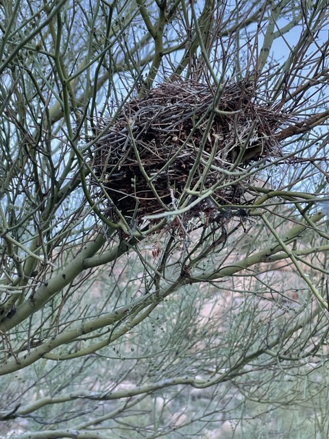 A cactus wren had built her nest on a palo verde branch, and we admired her handiwork as we made our way down.