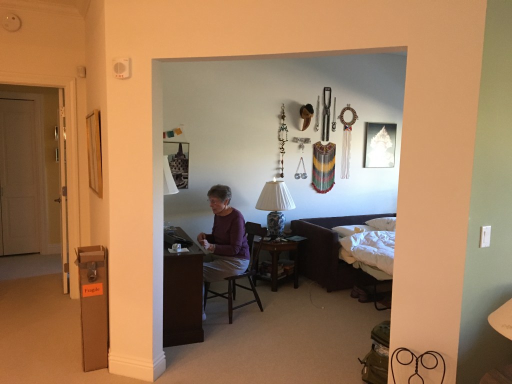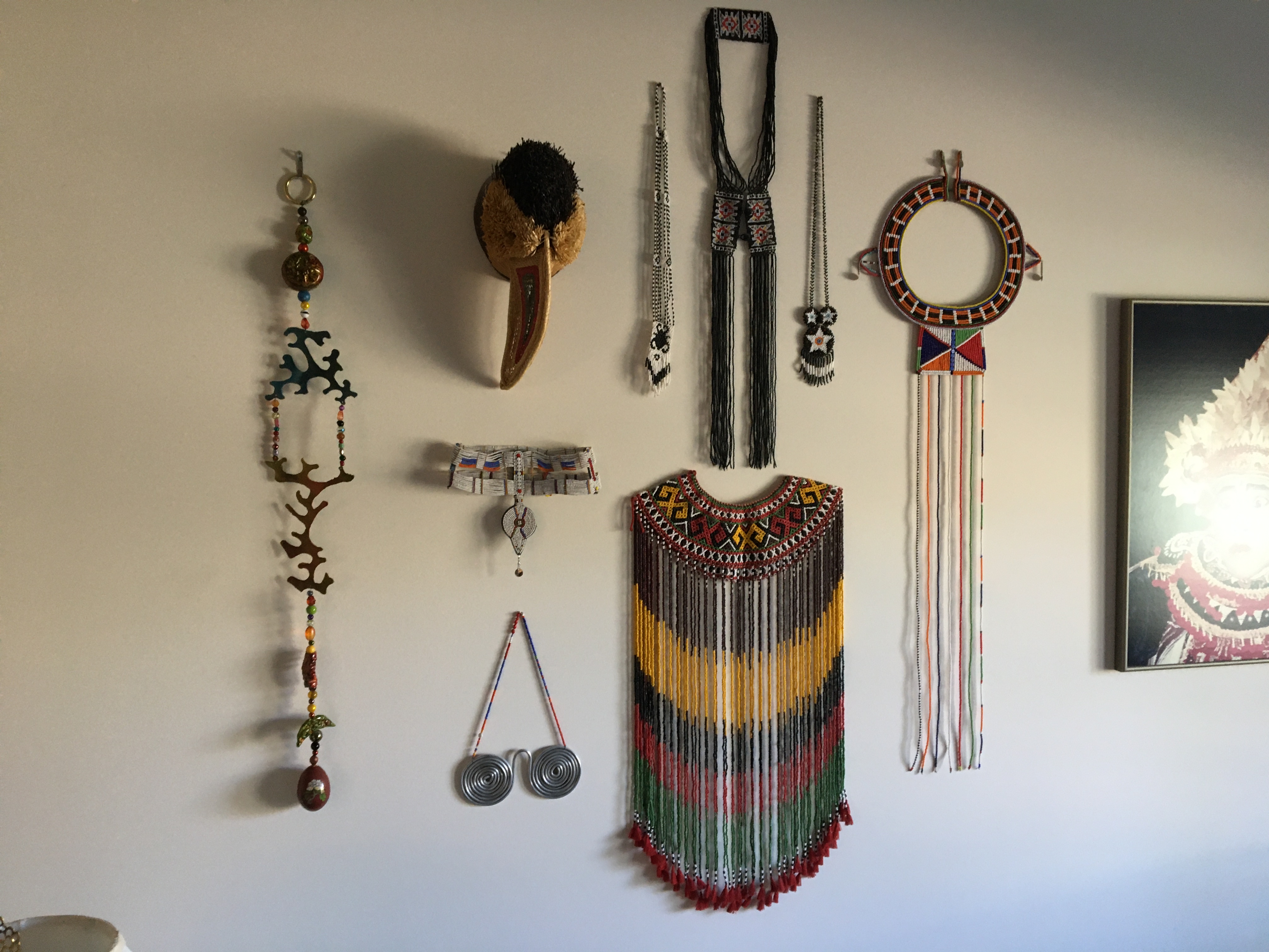 There is a Panamanian toucan and a coming-of-age necklace for Indonesian women. They hang in her lair, in her woman-cave.
