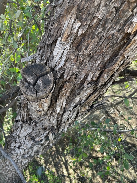 A well placed bench welcomes us. Behind is a mature mesquite, shaggy and fissured.