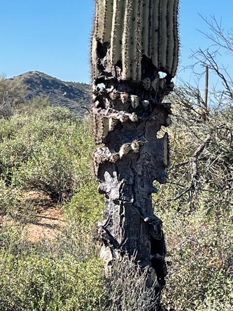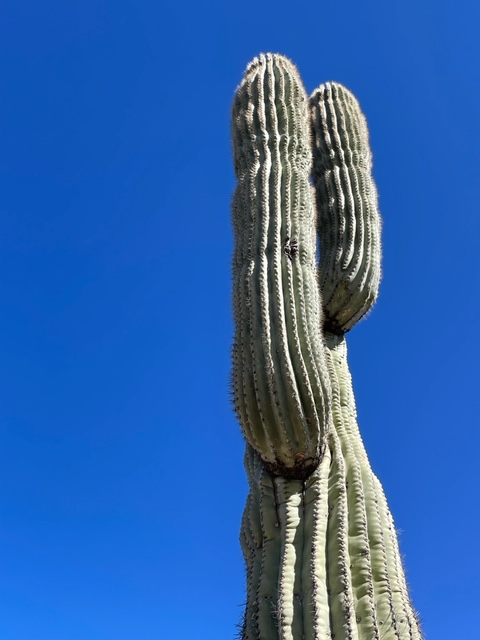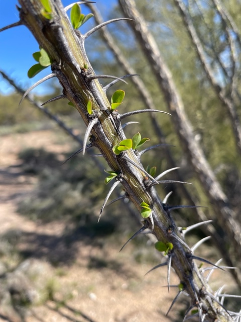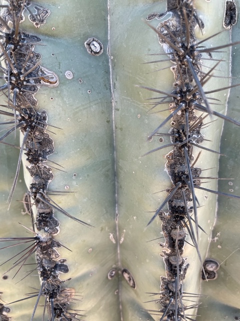 Close up, cacti are so severe. The thorns are actually modified leaves, and help the reduce water evaporation. It is also a fierce sort of armor, so different from the more gentle deciduous trees back east.