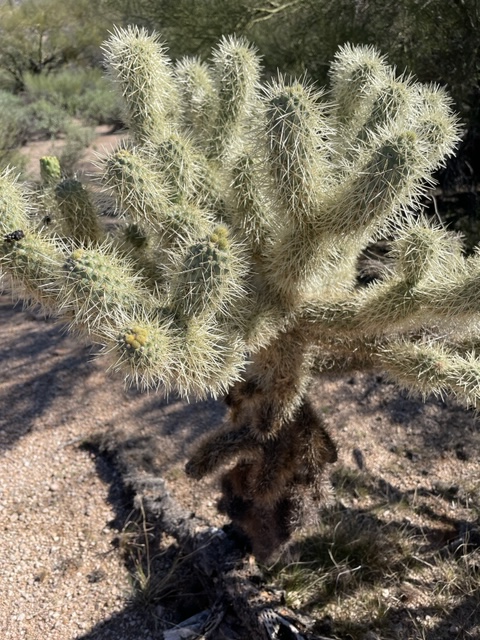 Teddy-bear chollas swell, show off, display themselves, muscular arms on blackened stalks.