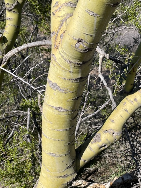 The bark of the Palo Verde pops, grasshopper-chartreuse in the sharp sunlight.