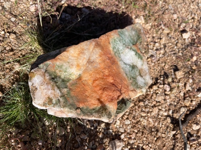 Quartz sparkles, scattered like treasure on either side of the trail.