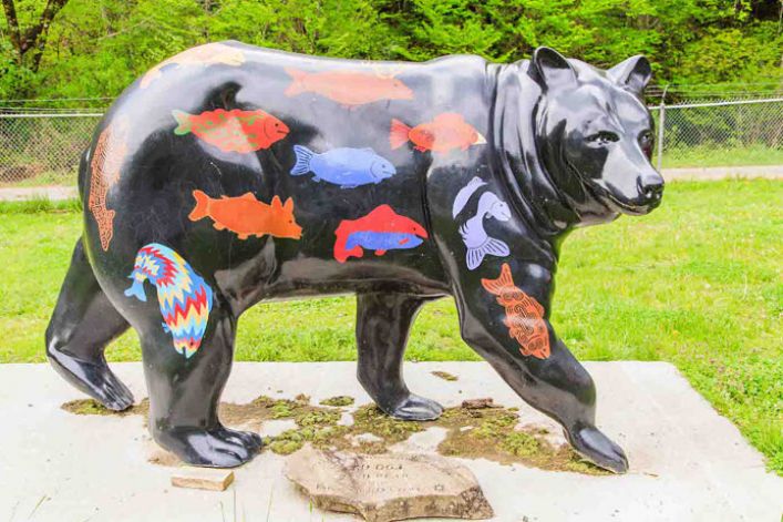 The black bear has always been held sacred by the Cherokee, and a project in North Carolina displayed sculptures decorated with the symbolism of different clans: Bird, Blue, Deer, Wolf, and so on.
