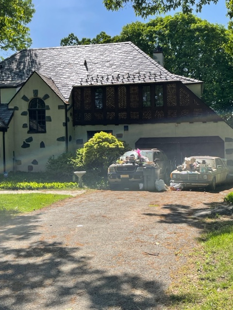 Our house, with the long shadow of an oak in whose hollow I built houses out of acorns and twigs, now seemingly inhabited by hoarders.