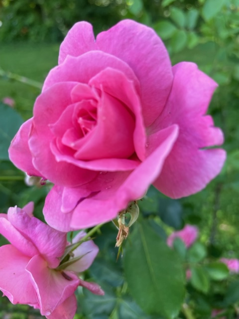One reminds me of a wild rose we once found in a neighboring meadow. Why it strayed from a domestic border I don’t know. That flower had no name that I ever knew; it was anonymous yet ravishing. I dug up part of it when we sold the house and replanted it when we moved to suburbia, careful to leave some of the roots so the plant would bloom for the new occupants.