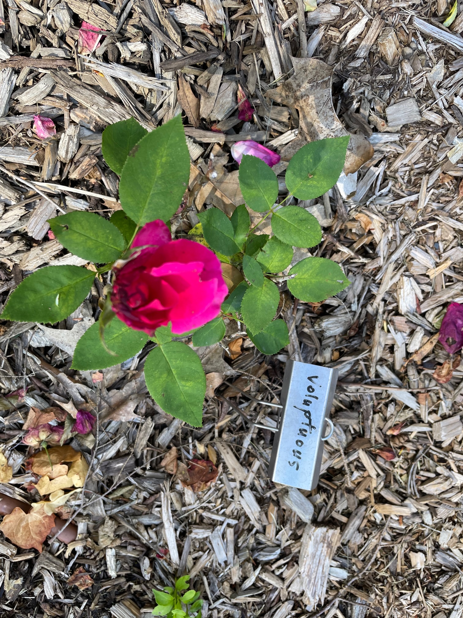 Each ring features different kinds: the outer ring has been planted with shrub and old garden roses, the middle hybrid teas and grandiflora, and the inner with polyanthas and floribundas. The ones I like best have labels, barely legible old keys to each one’s provenance.