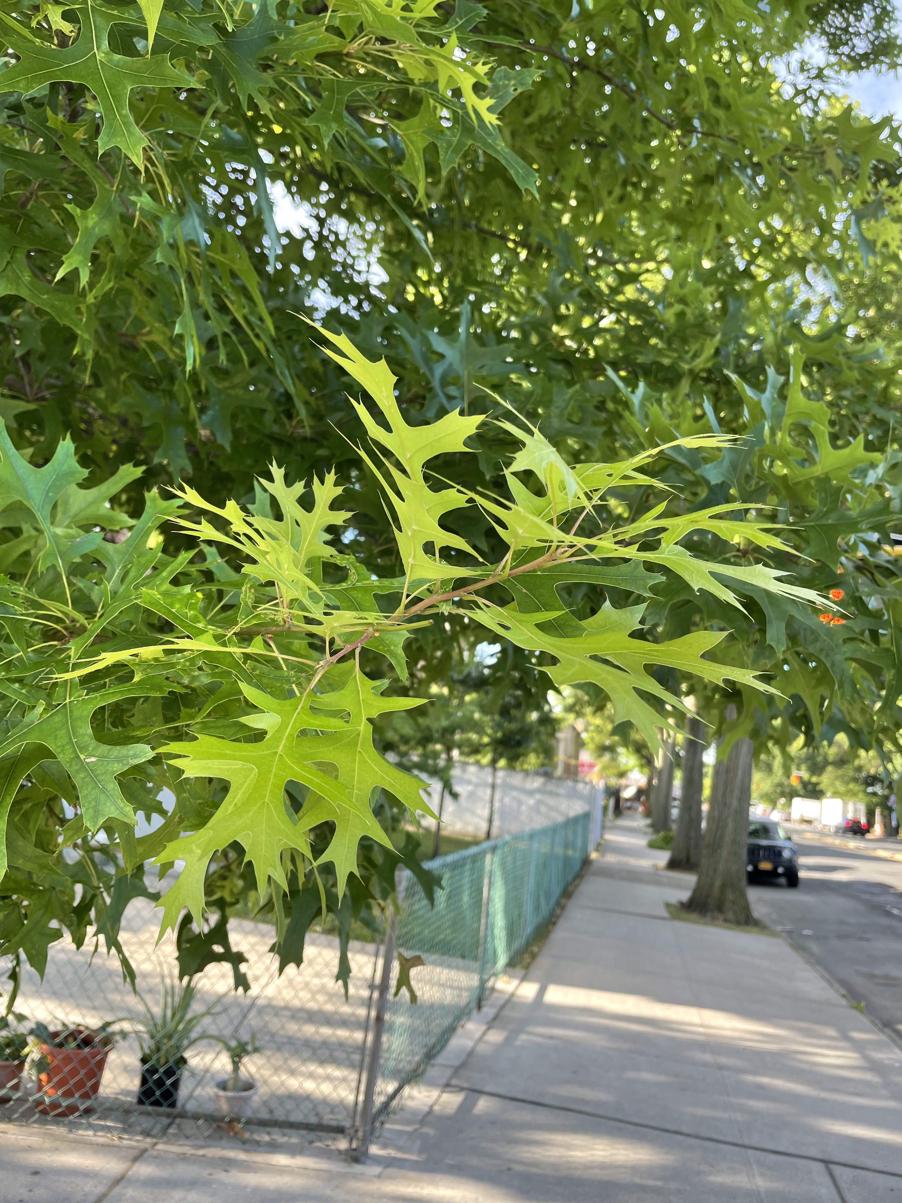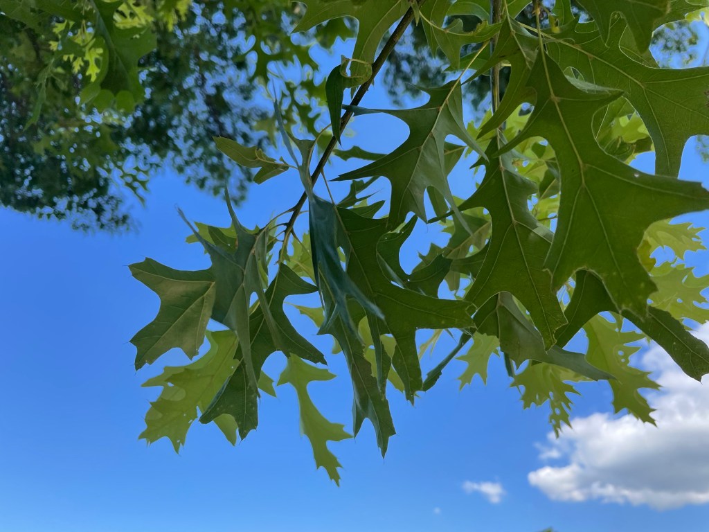 Deeply carved sinuses, the scallops that distinguish the pin oak leaf.