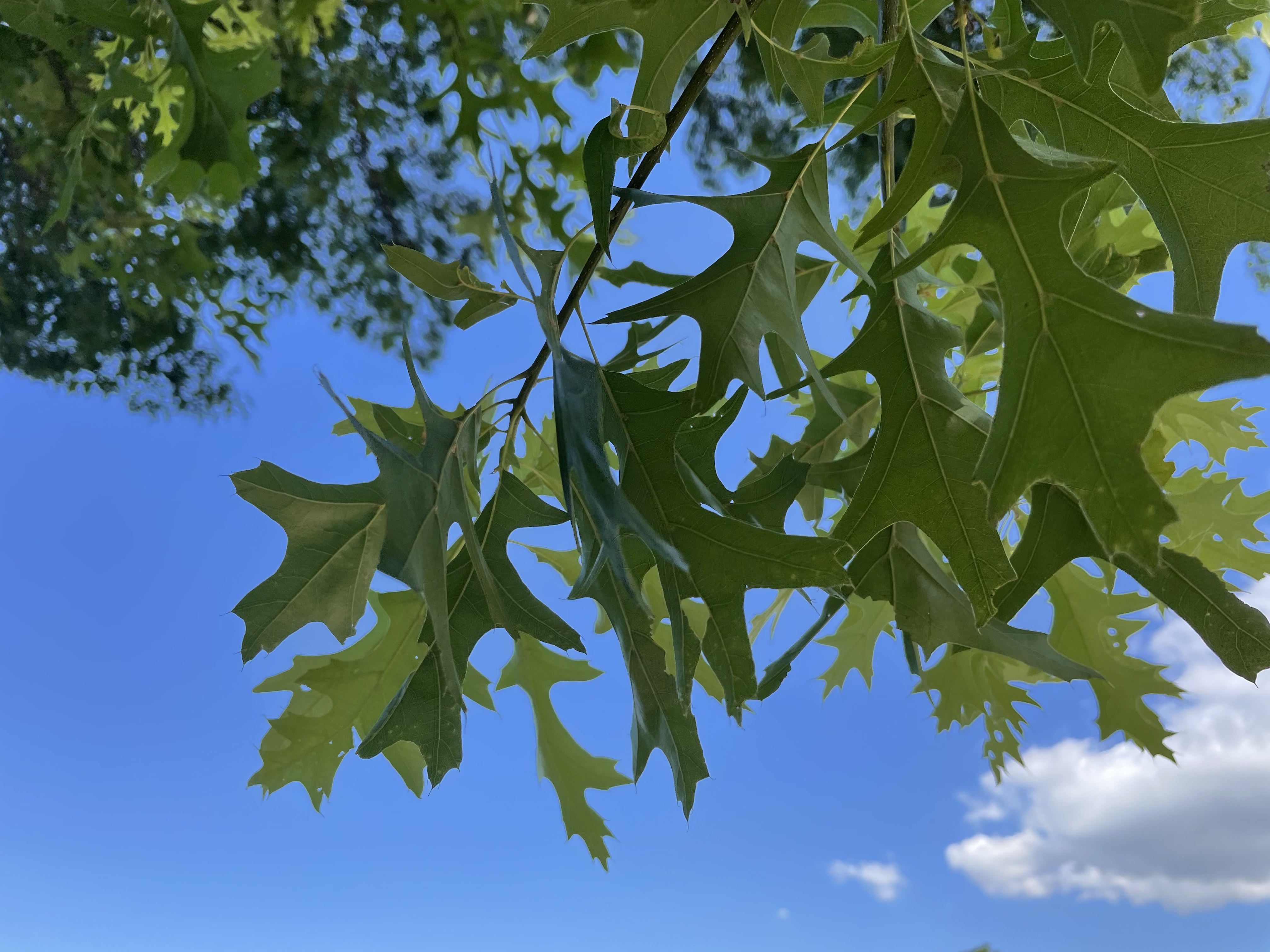 Deeply carved sinuses, the scallops that distinguish the pin oak leaf.