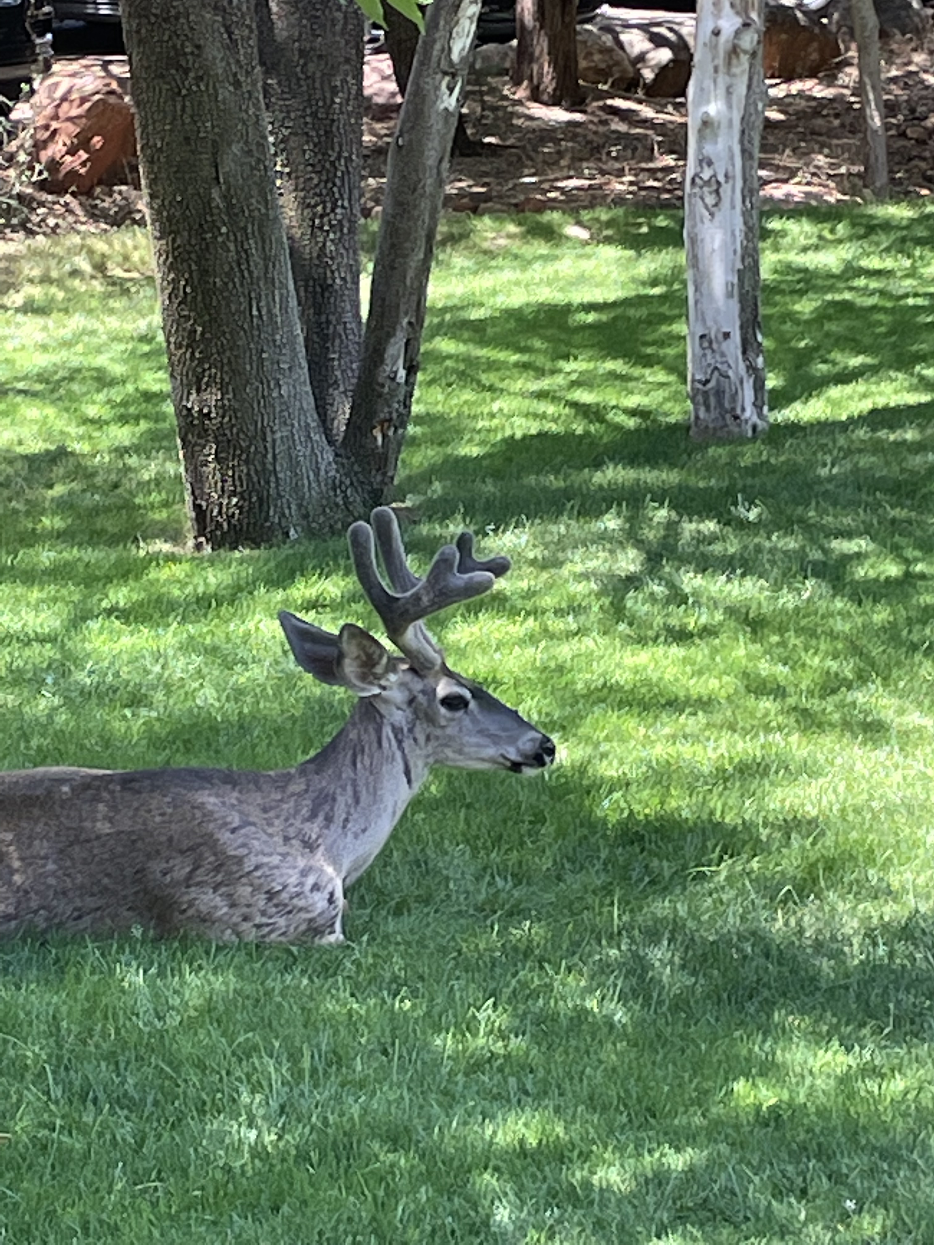 What happens in and about these red rock castles in the dark? The mule deer take a break from chomping grass (ruminants have four-chambered stomachs, so it takes a while to fill them all, and it’s probably pleasant to lie down during a digestive spell).