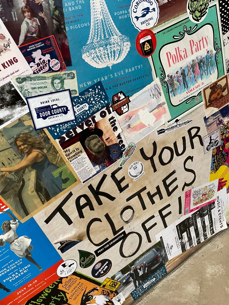 All kinds of signs, not just cairns, in this Midwestern sortie. The wall leading to the beer hall restroom.