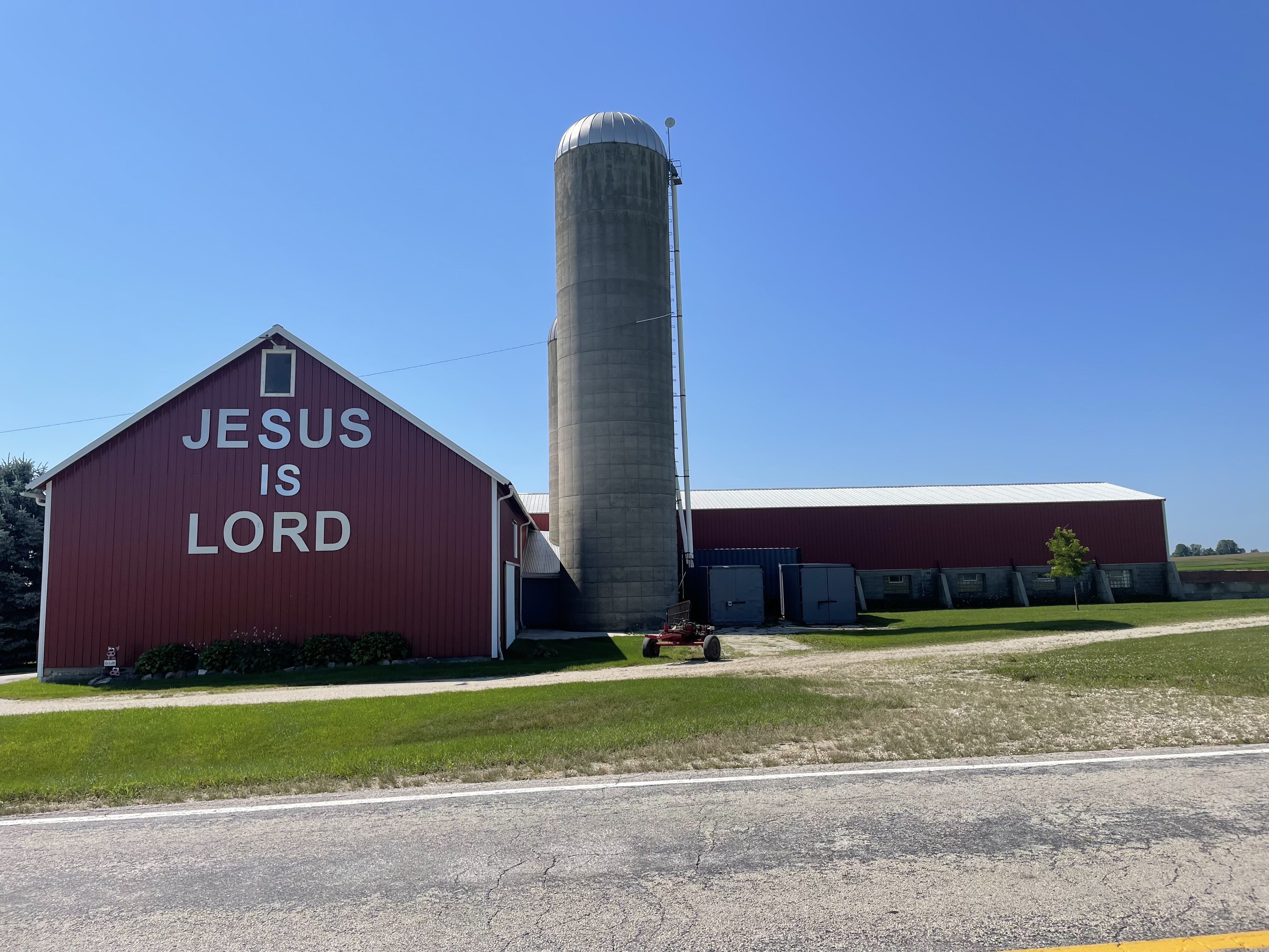 included some arresting sights, such as the Wisconsin highway barn painted in mile-high letters by people who obviously wanted to get their message across. These guys should work on Madison Avenue. OKAY, WE HEAR YOU!