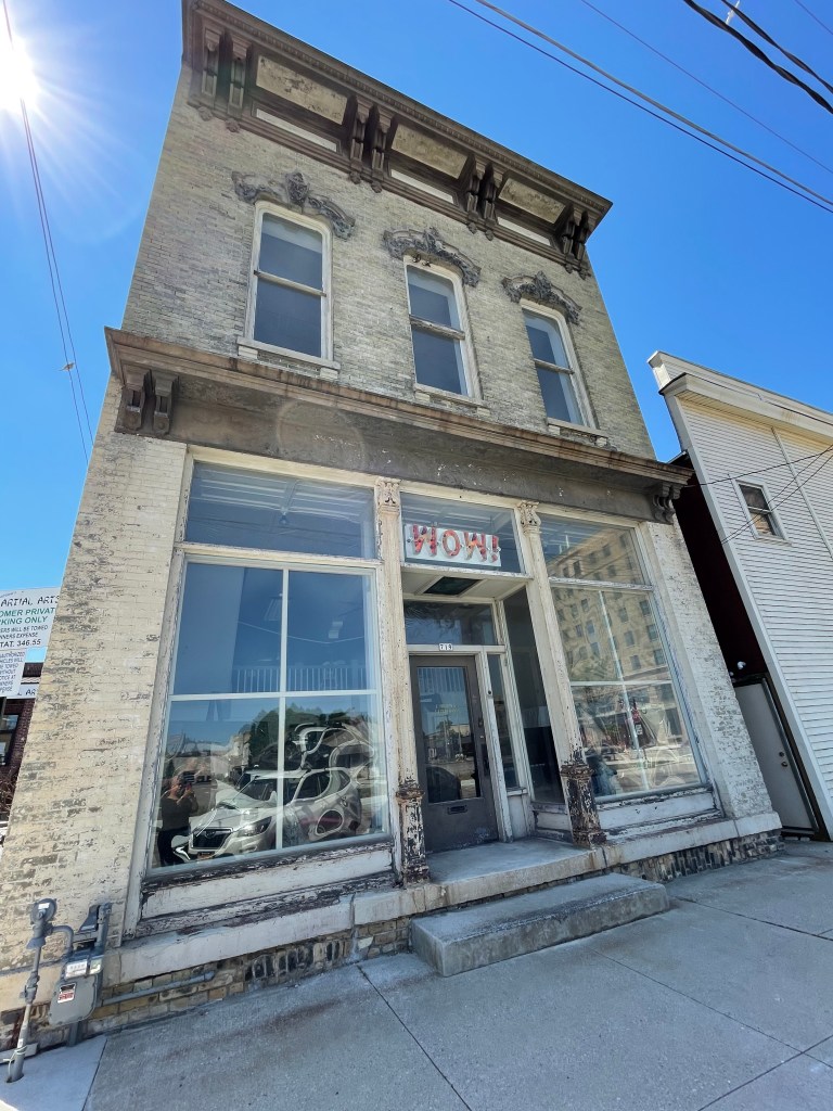 WOW! Seemingly defunct art gallery in Manetowac, just before the Canadian border. Peeking in, dusty easels and all.