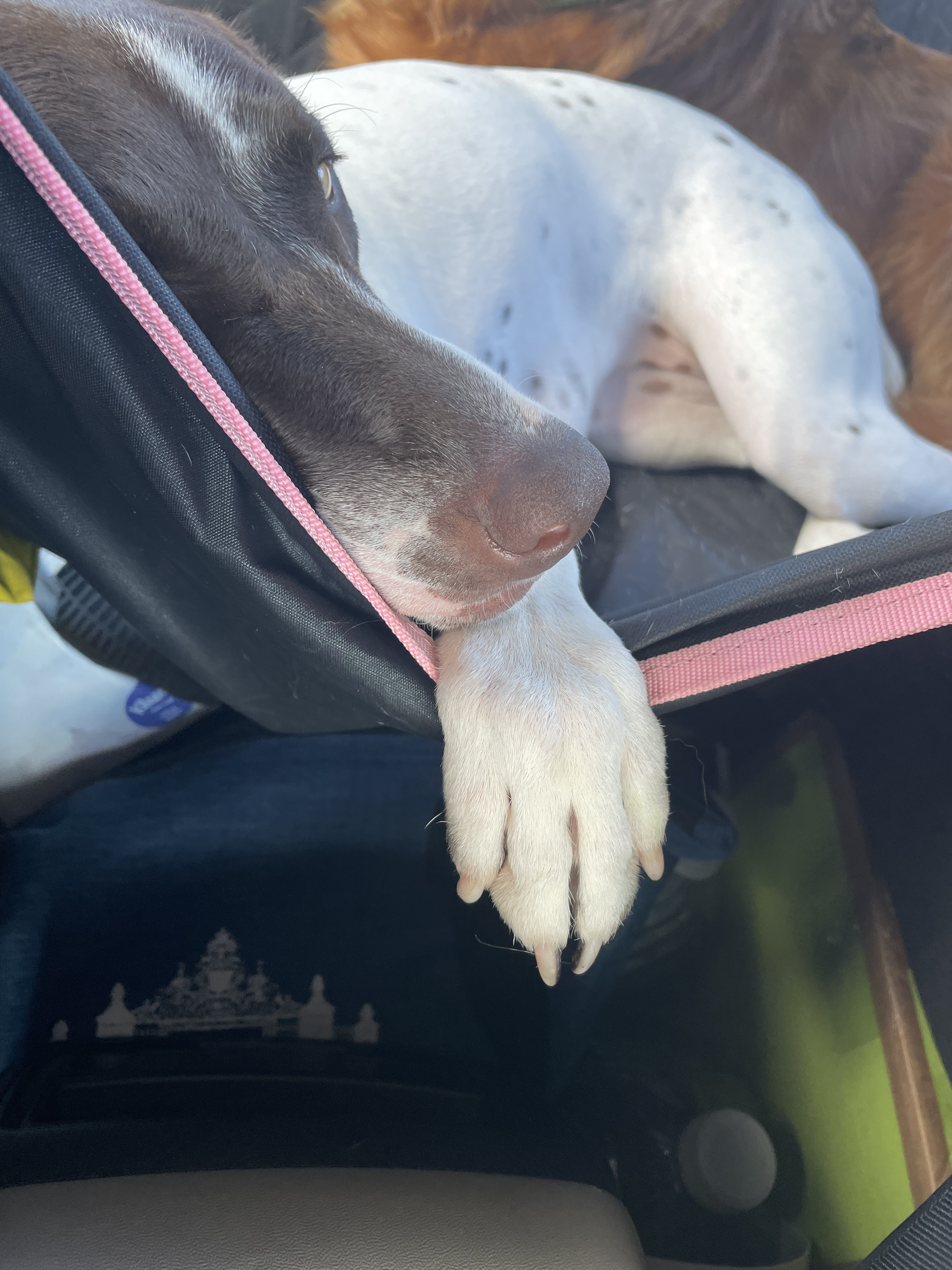 It was hard to get enough of Ottilie the German short-hair pointer taking cat naps in the back seat.