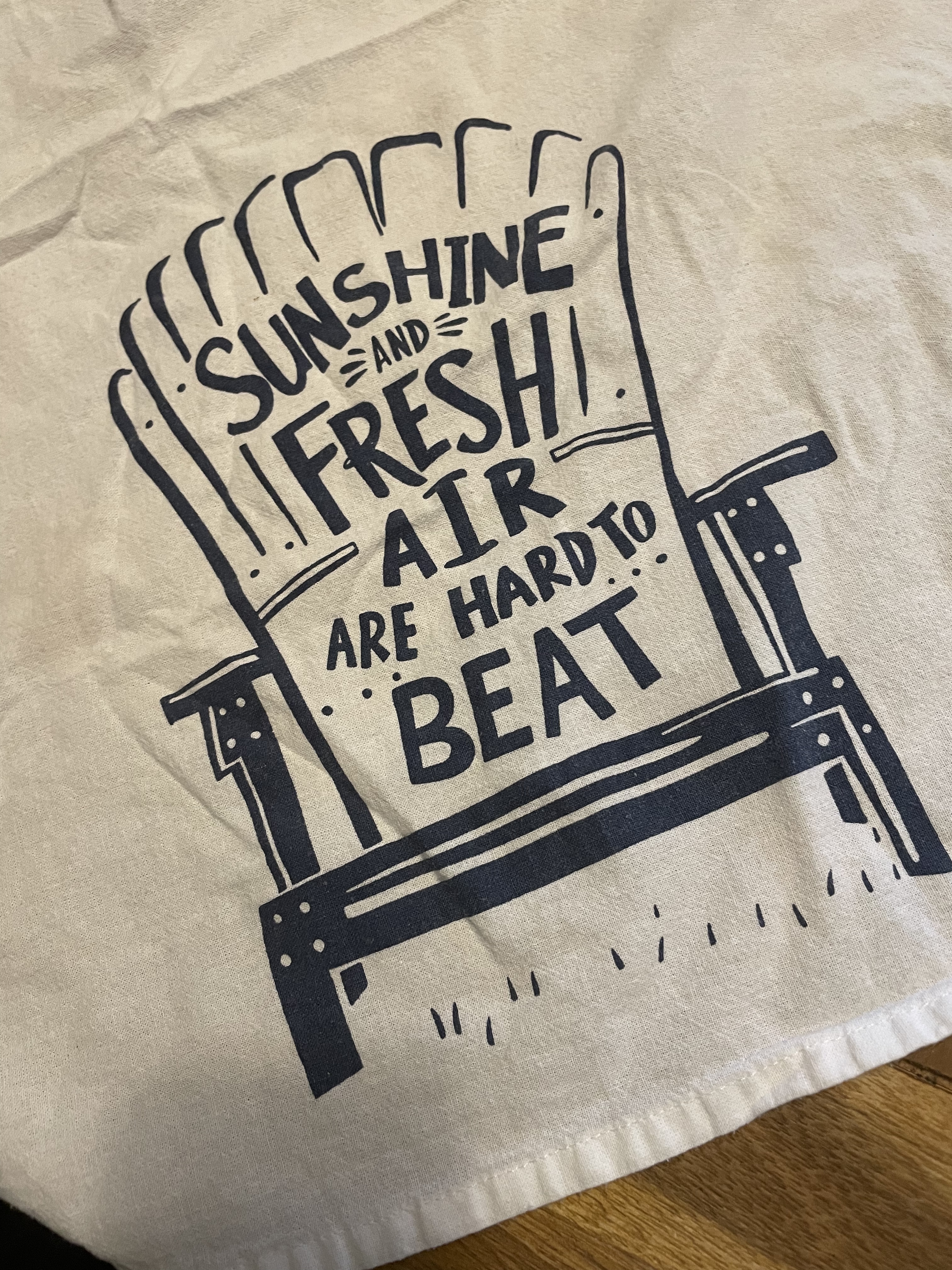A message dishtowel I seem to have absconded with from the family reunion cottage on Green Bay. Yes! Agreed.