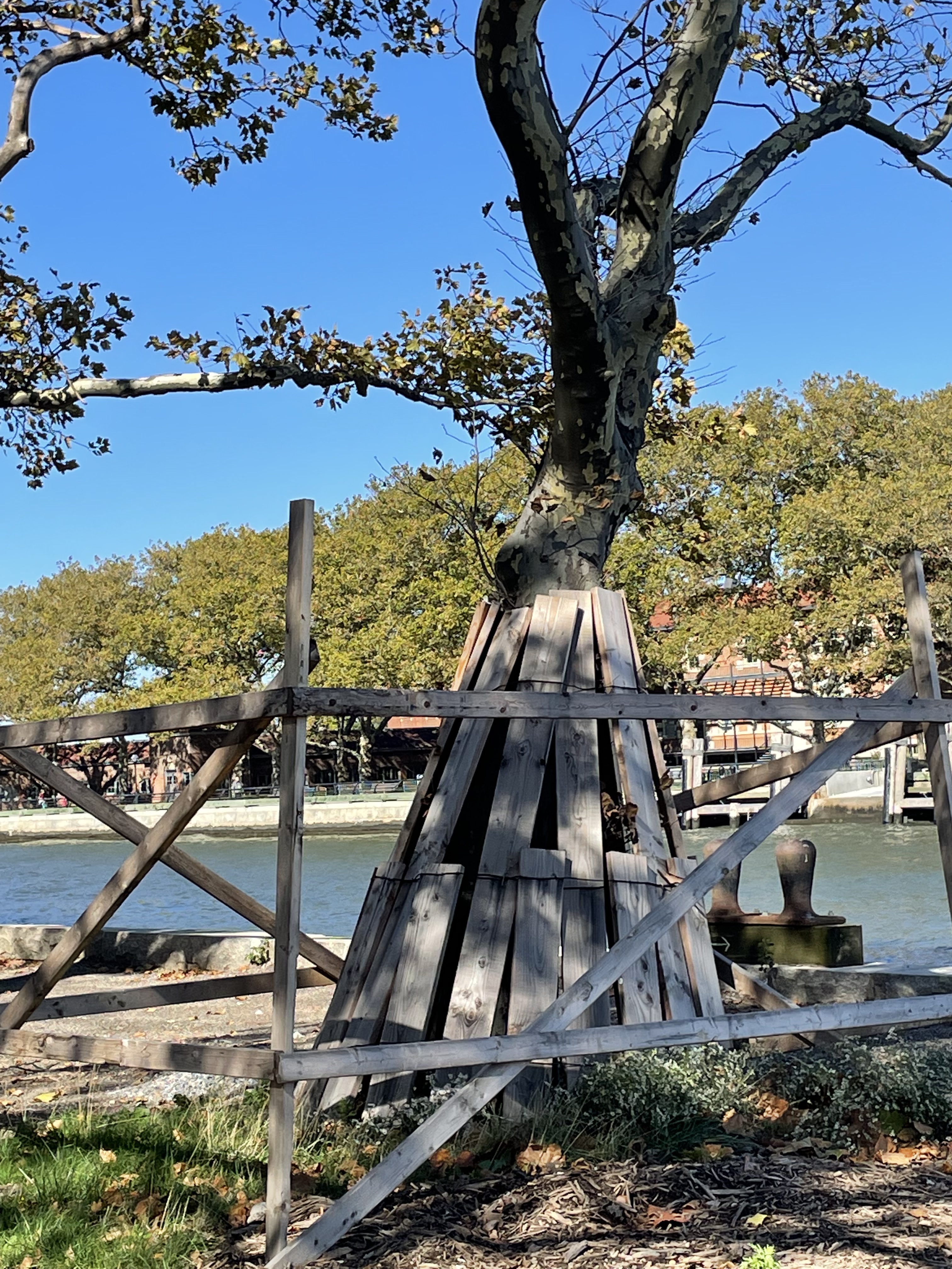 Are there bats here? someone asked me yesterday, with a hopeful tone. Well, I’ve seen some things… not bats though. Even some trees are zombies. Called that when they have hidden problems that can cause significant damage when you least expect it. More than a few at Ellis Island qualify, even though they are safely contained at the moment.