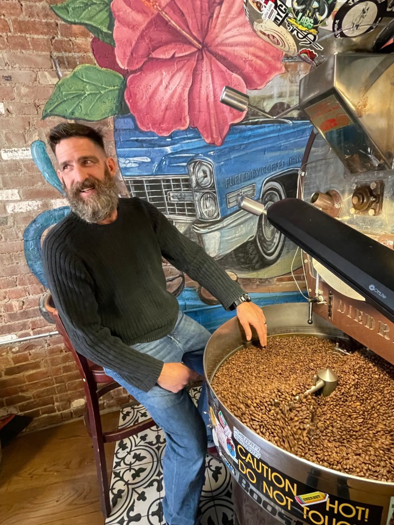 The coffee roaster, Dave, was hard at work, as always.