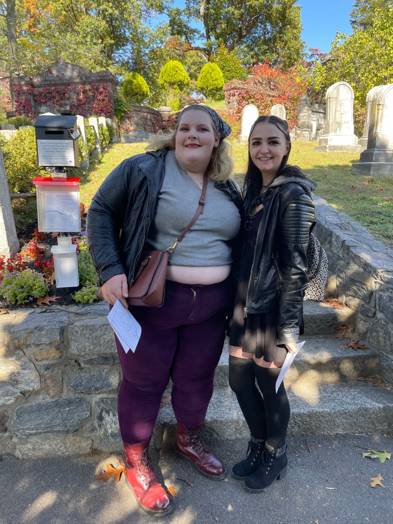 Hannah and Kira said they came to the burial ground “because it’s only an hour and a half away.” Okay, perhaps a good reason. There are some especially nice markers here. She saw beauty everywhere.