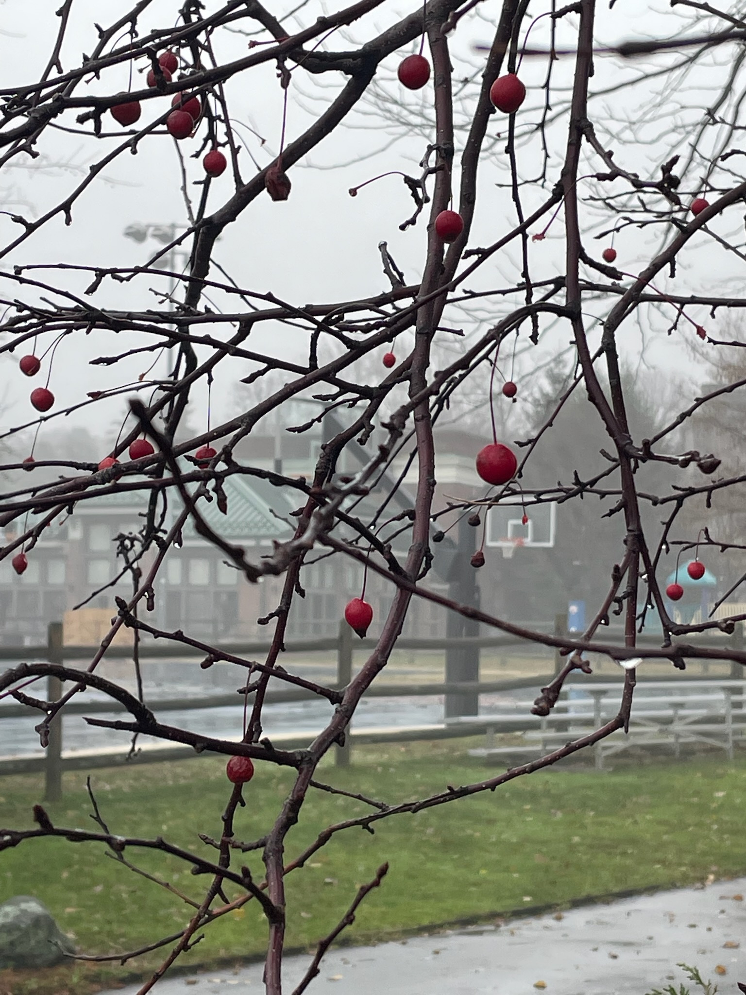 So many trees in the park. Dazzling zelkovas with their rain-drop jewelry.