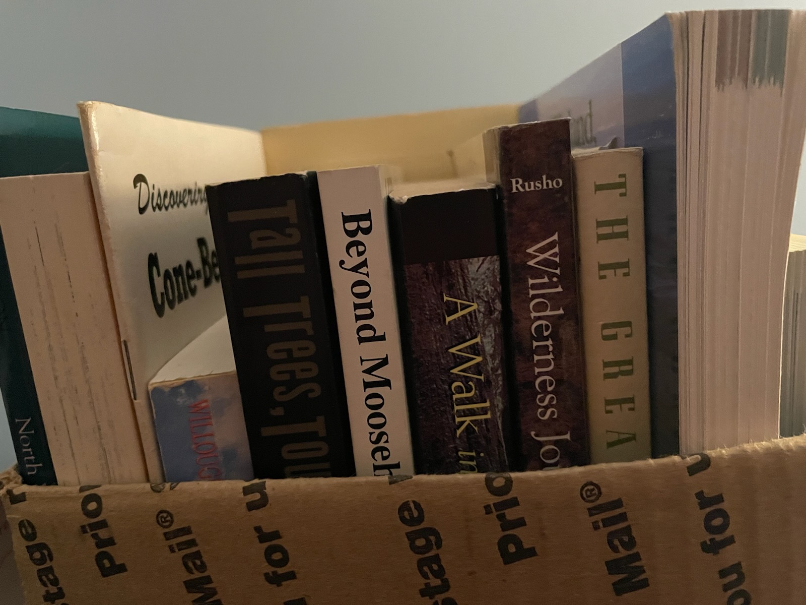 My brother the vagabond decided to clean out his storage space, getting rid of books among other things. Knowing I was writing a book about trees and forests, he thought of me. I get it. We just did the same – winnowed down storage and some books had to go, whether to sell to the Strand in New York City or to donate to the local PTSA. It’s hard to part with books you love if you’re a writer, or a reader.